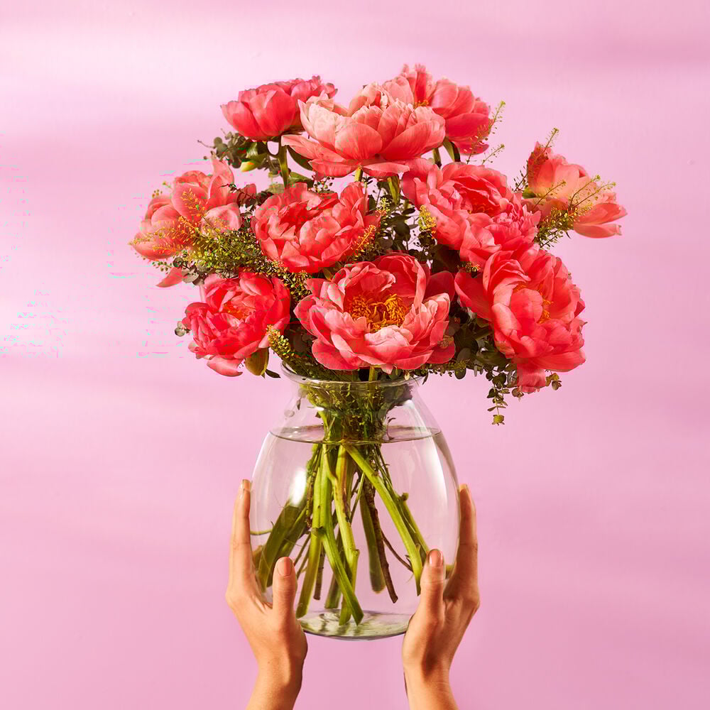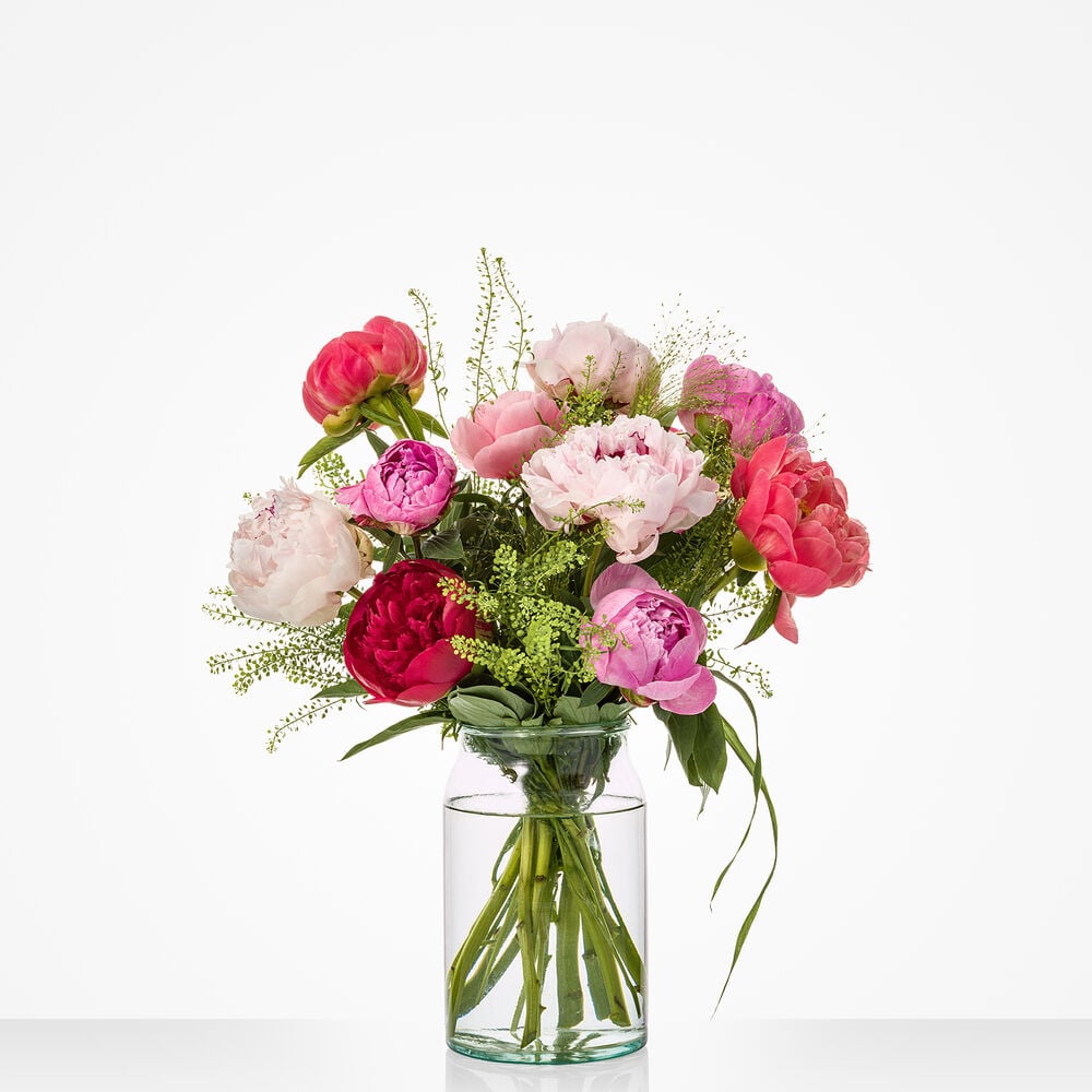 Pioenrozen zijn ware toonbeelden van schoonheid en elegantie. Van mei tot eind juni zijn deze majestueuze bloemen op hun best. Wat begint als een bescheiden knopje, transformeert in de vaas tot een explosie van kleur en geur. De talloze delicate blaadjes ontvouwen zich laag voor laag tot een indrukwekkende bloem. En met hun rijke kleuren - variërend van zuiver wit en zacht roze tot diep bordeauxrood - zijn pioenrozen een favoriet voor speciale gelegenheden en een hartverwarmend cadeau voor verjaardagen en natuurlijk Moederdag!